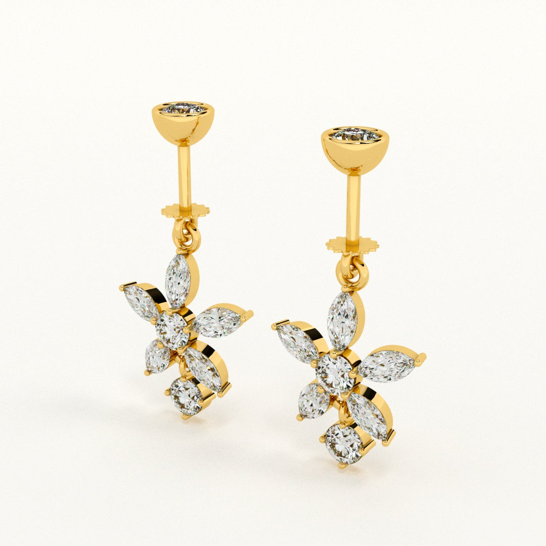 with our marquise stone flower design drop earrings. With their intricate floral pattern