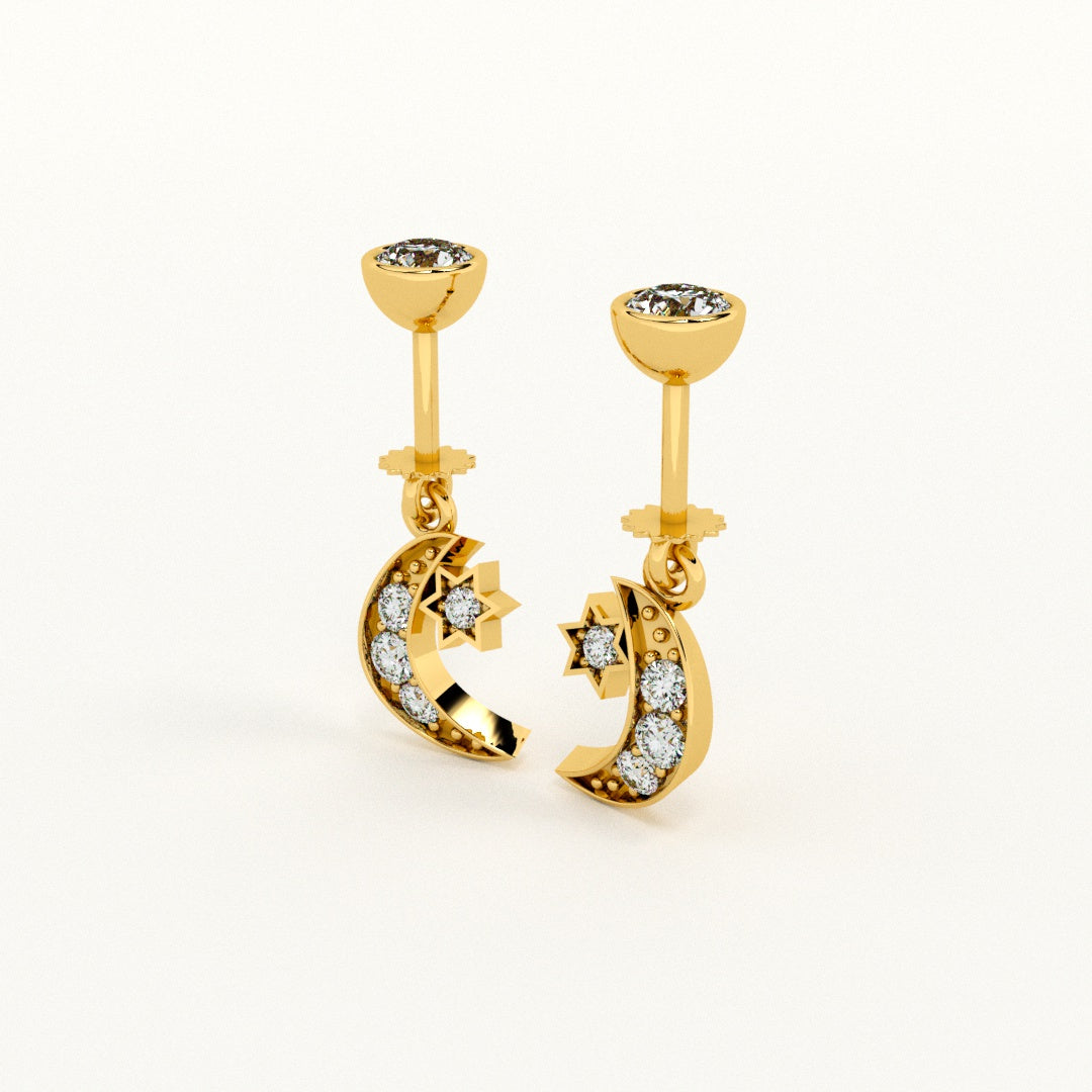 magic of the night sky with our enchanting Small Moon and Star Hanging Earrings. This