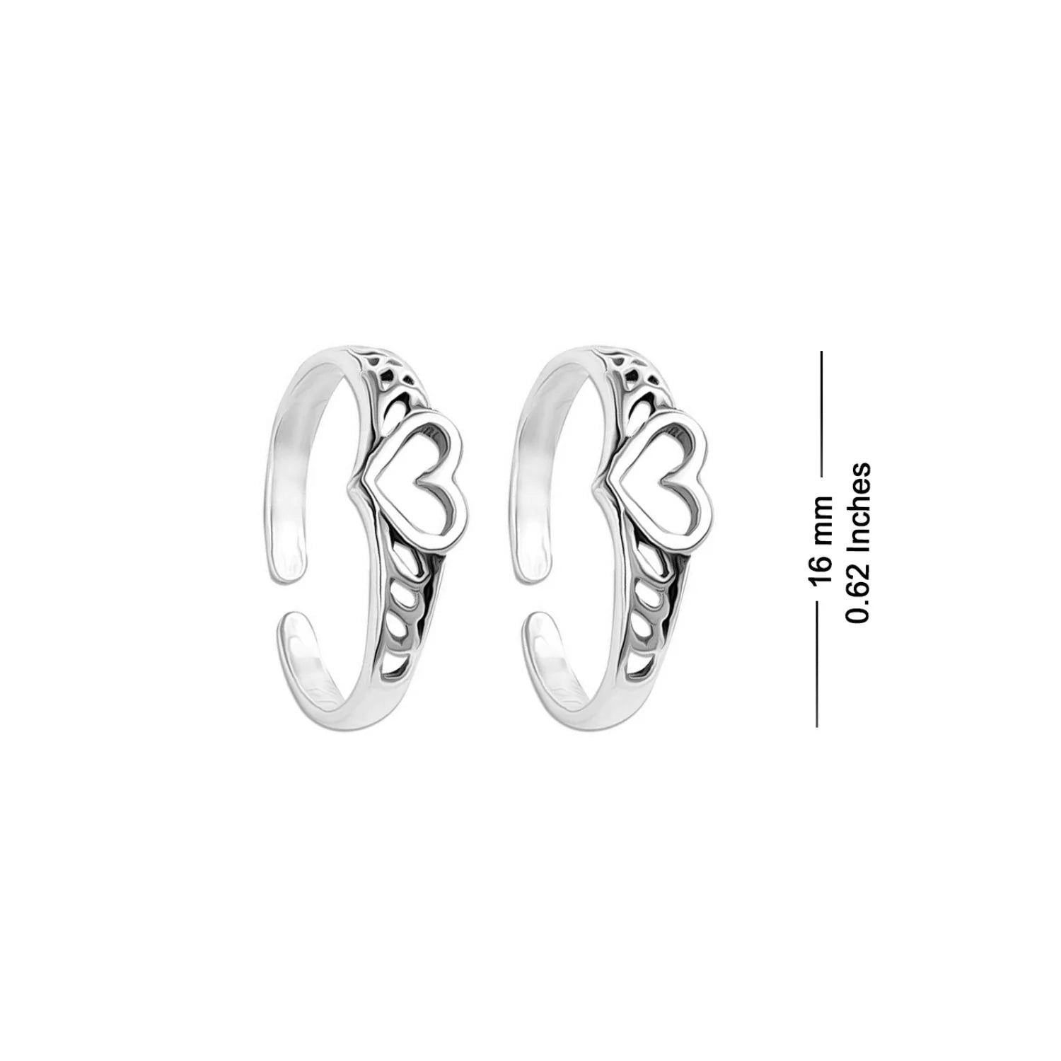 Polished silver hearts line this lightweight 925 silver band. Adjustable, cute, and perfect for gifting. A sweet accessory for all ages.