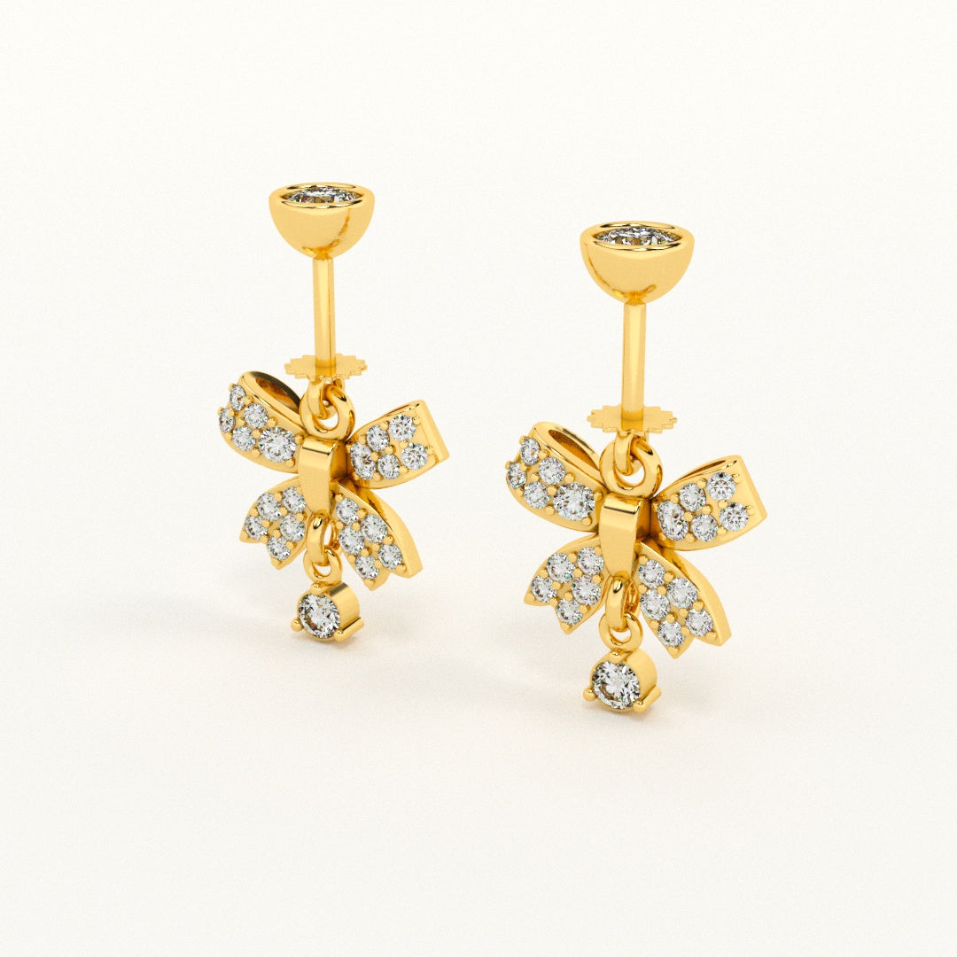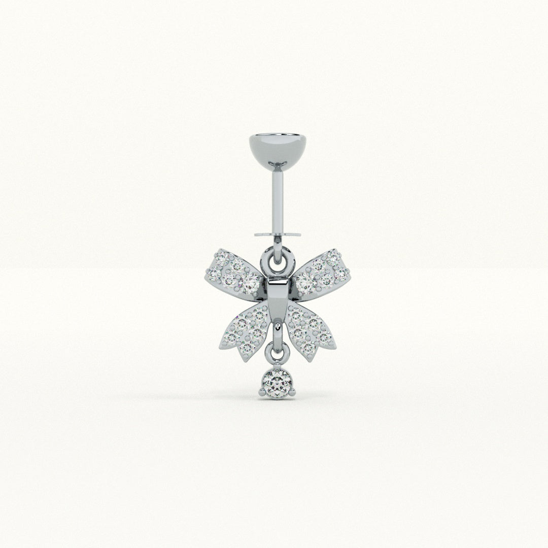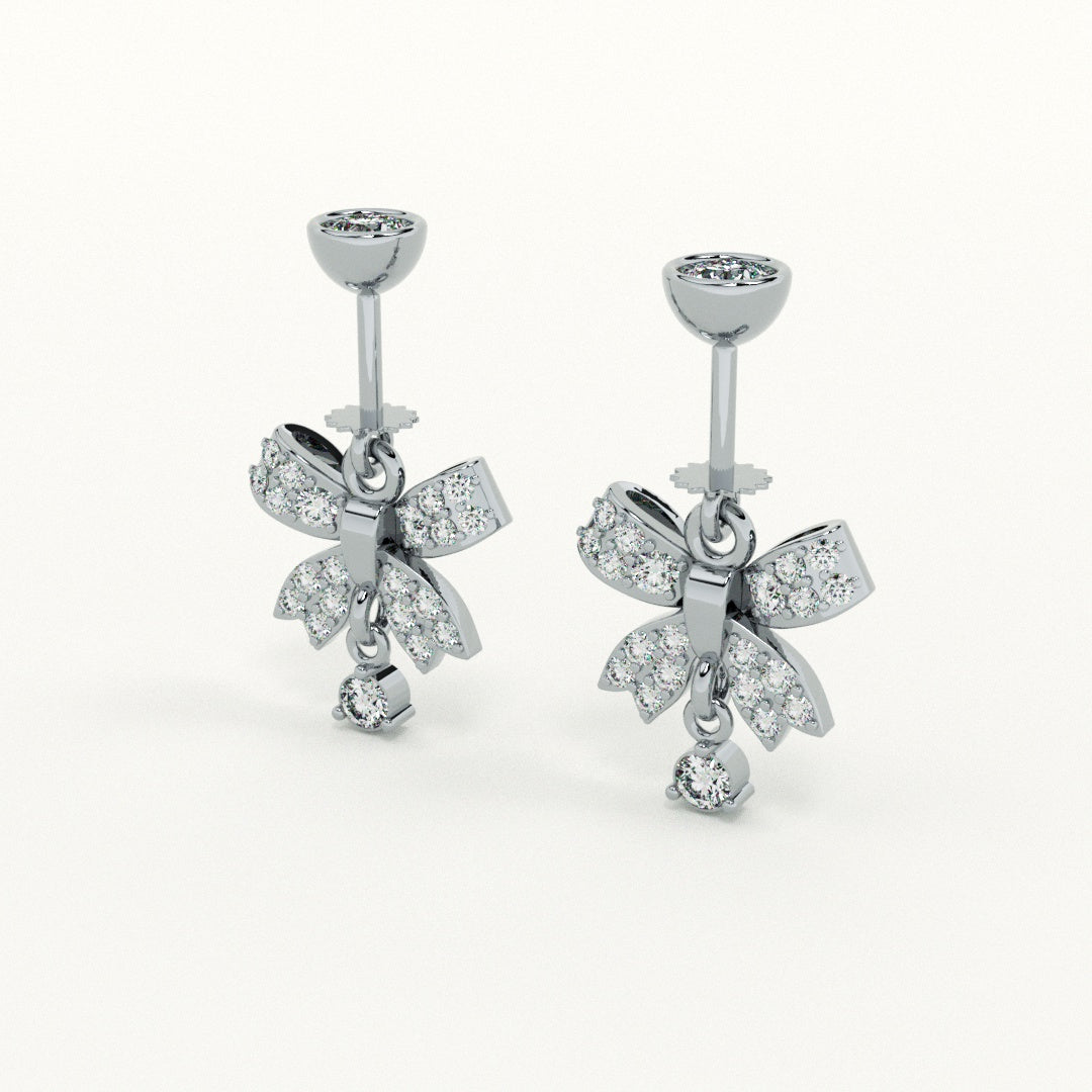Expertly crafted from 925 Sterling Silver and finished with a bright, tarnish-resistant rhodium polish, this single hanging stud features a beautifully detailed bow motif. The loops and tails of the bow are pavé-set with shimmering Preciosa stones that sparkle with every movement. A delicate drop features a final brilliant-cut solitaire, creating a graceful swaying motion.