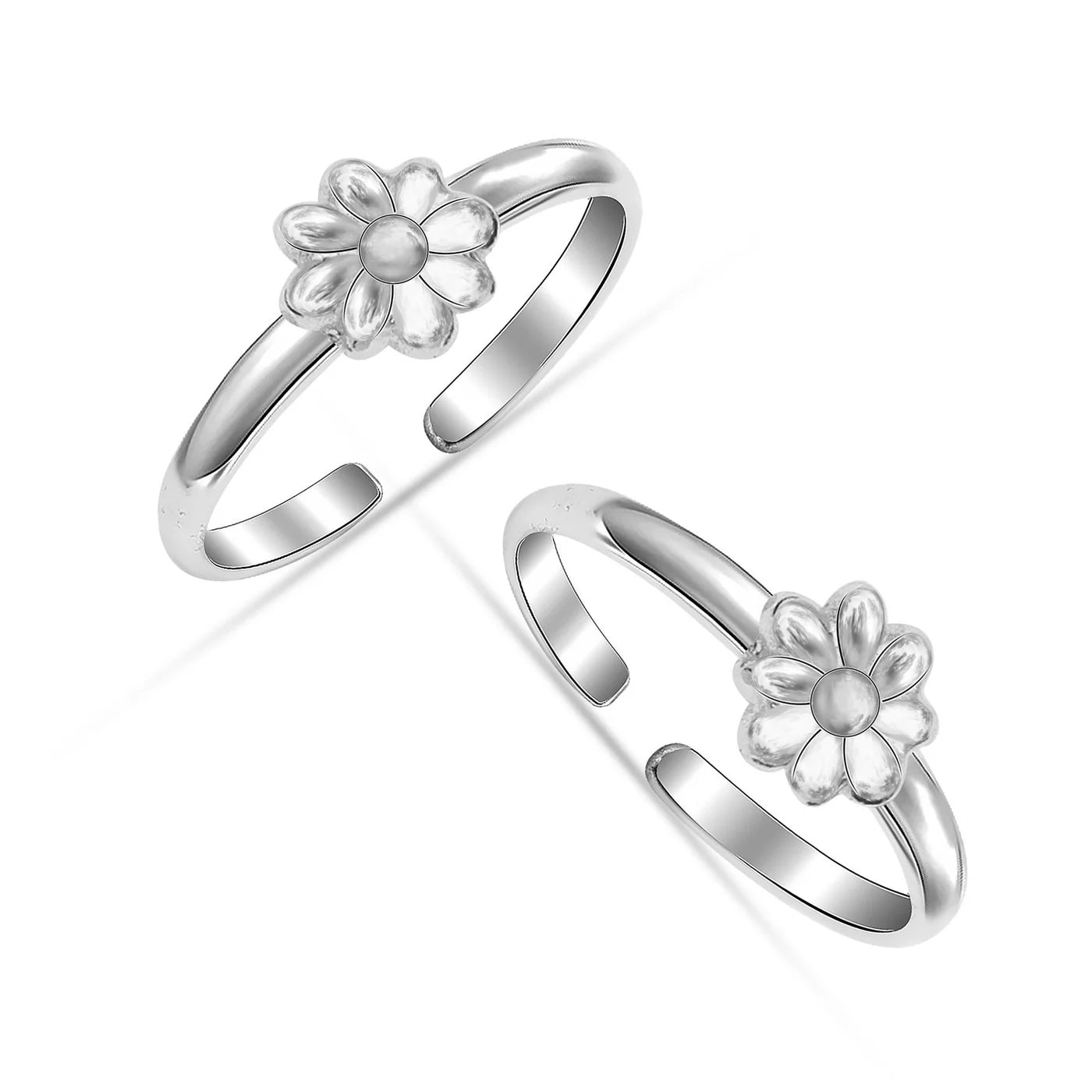 A subtle matte-finish flower sits at the center of this elegant silver band. Crafted in 925 sterling silver for a soft floral touch. Feminine, dainty, and suitable for gifting.