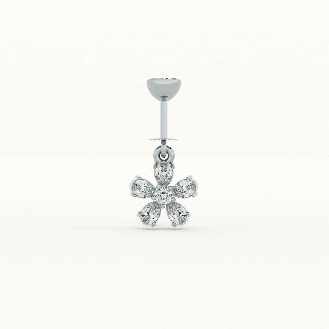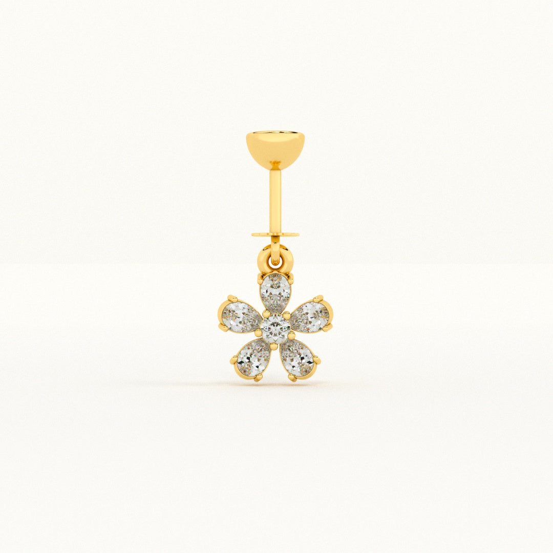 Design: A delicate five-petal flower motif suspended from a polished link, creating a graceful hanging effect.